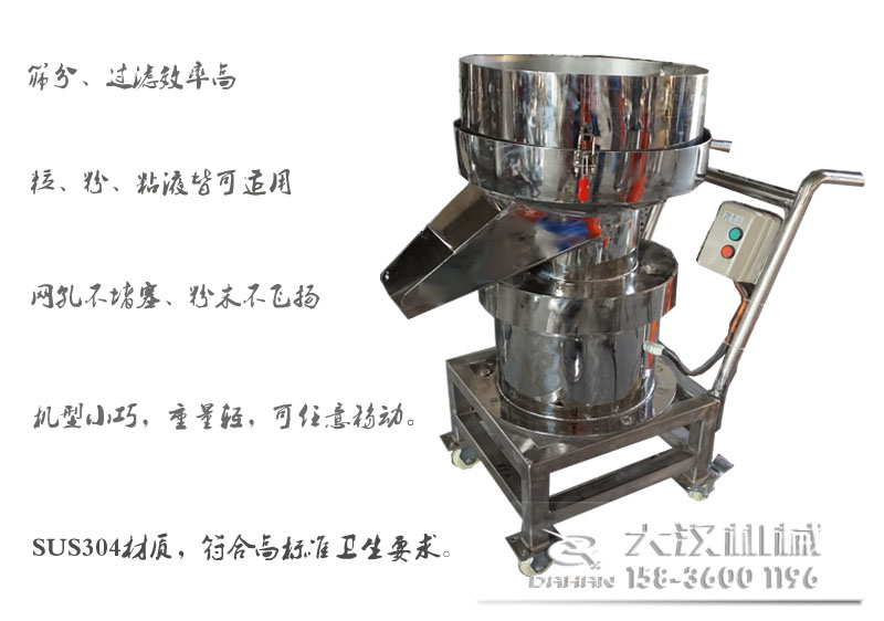 過濾篩是一種適用于各行業(yè)單層,小顆粒、粉、粘液處理生產(chǎn)量小或者雜質(zhì)少物料的振動(dòng)篩分、過濾設(shè)備。大漢牌推車式450型過濾篩,在原有過濾篩的基礎(chǔ)上,配備了小推車,推車與機(jī)身融為一體,使本身機(jī)型小巧的450過濾篩移動(dòng)起來更加的方便,省時(shí)省力。